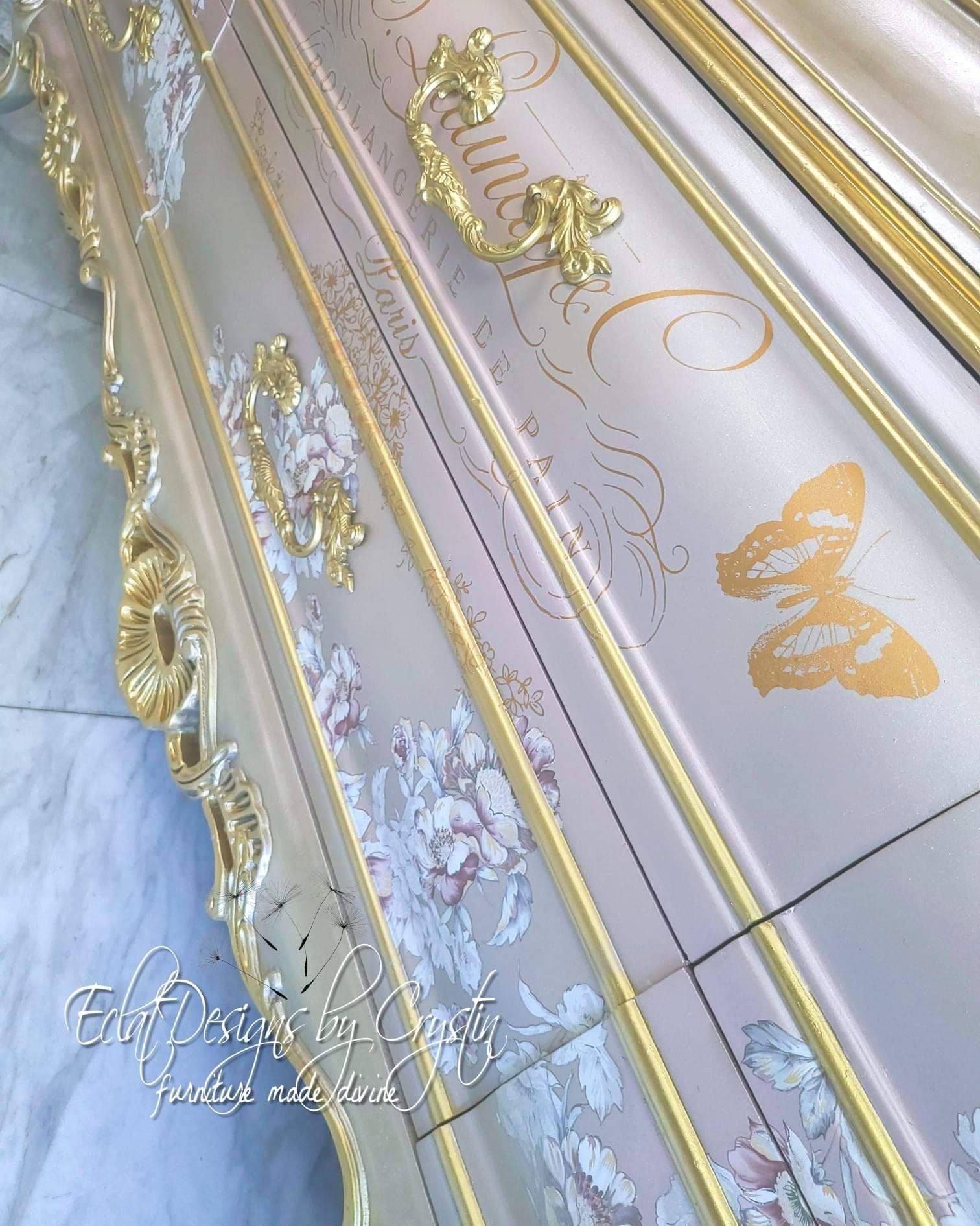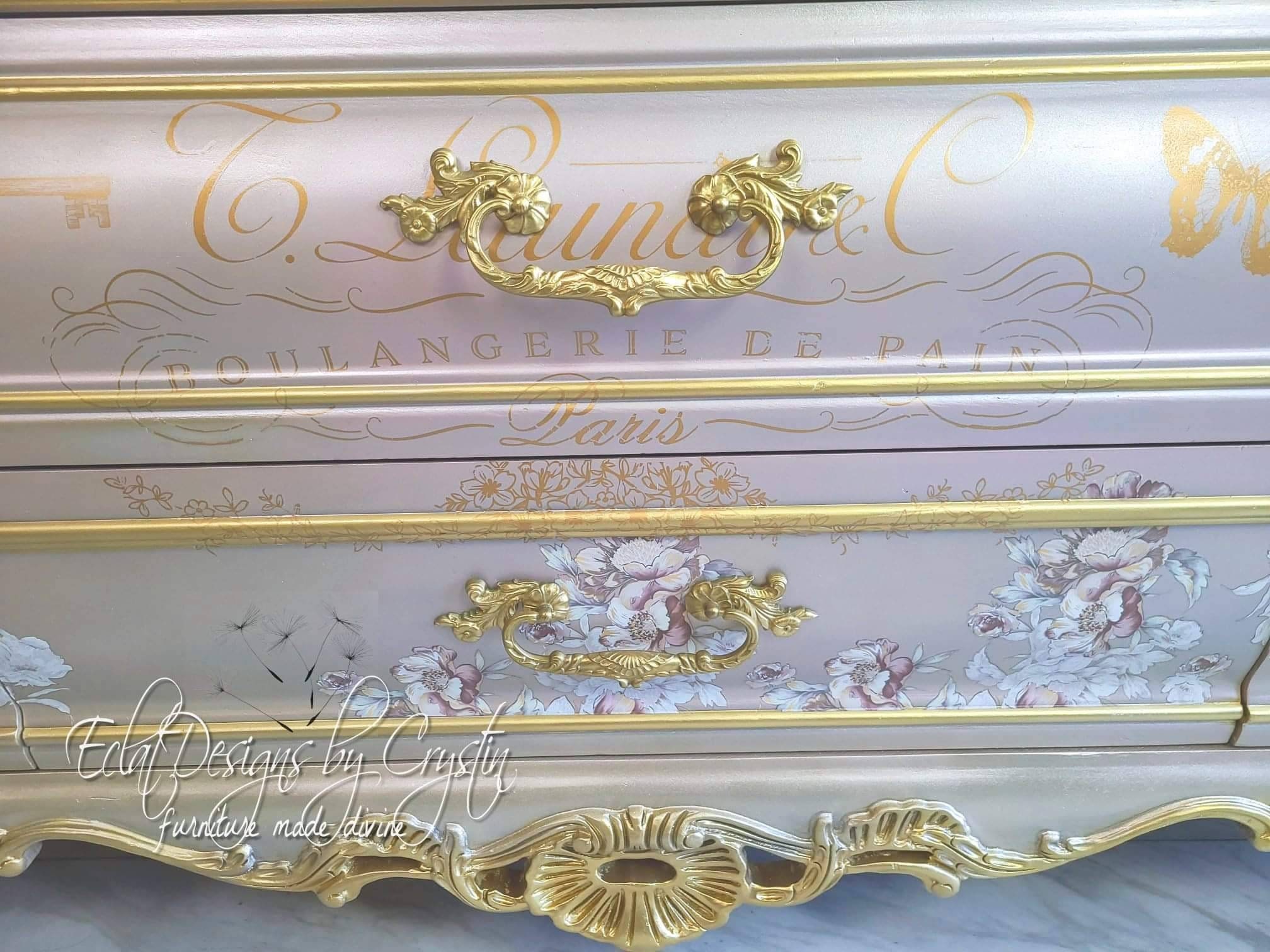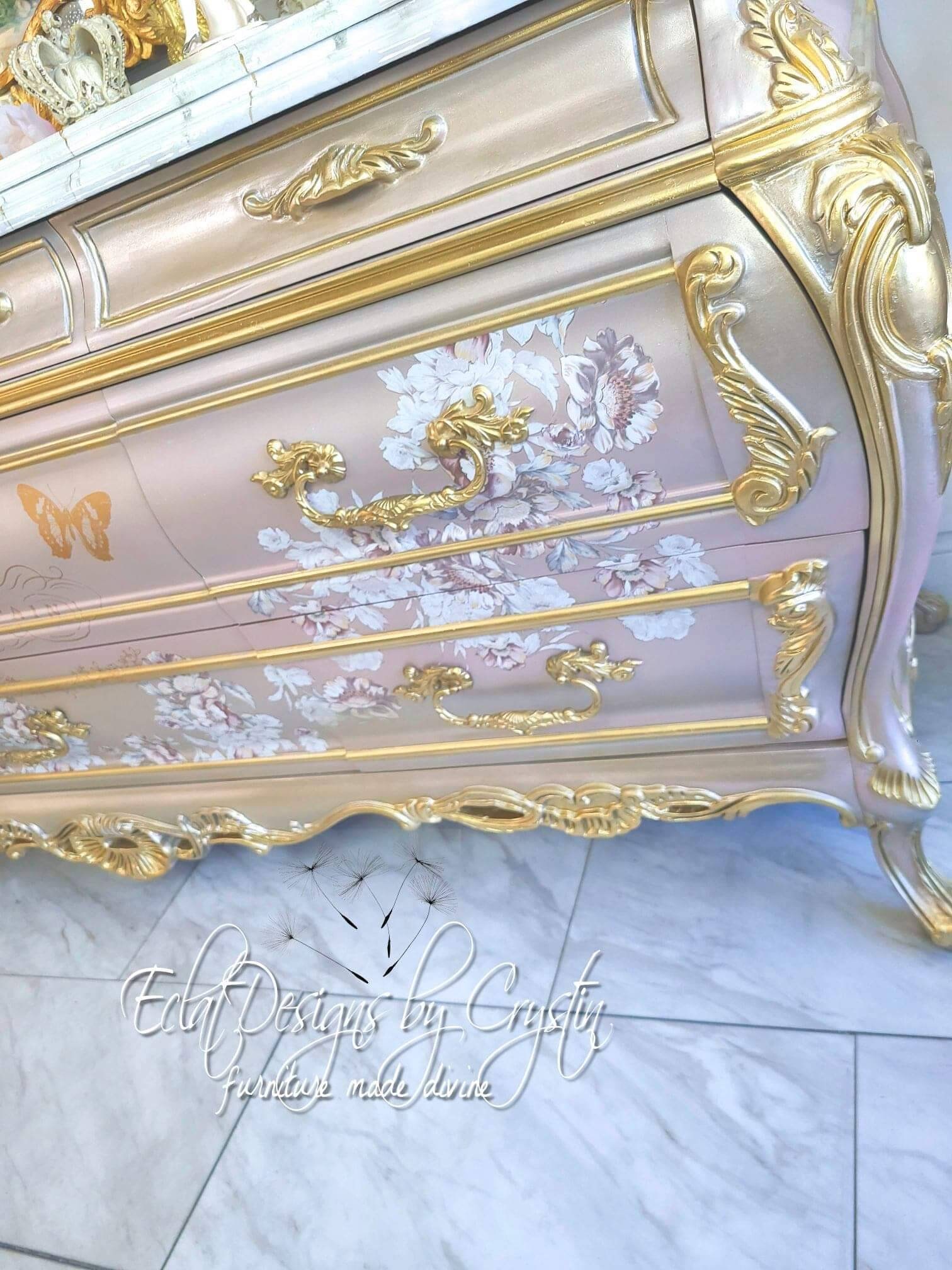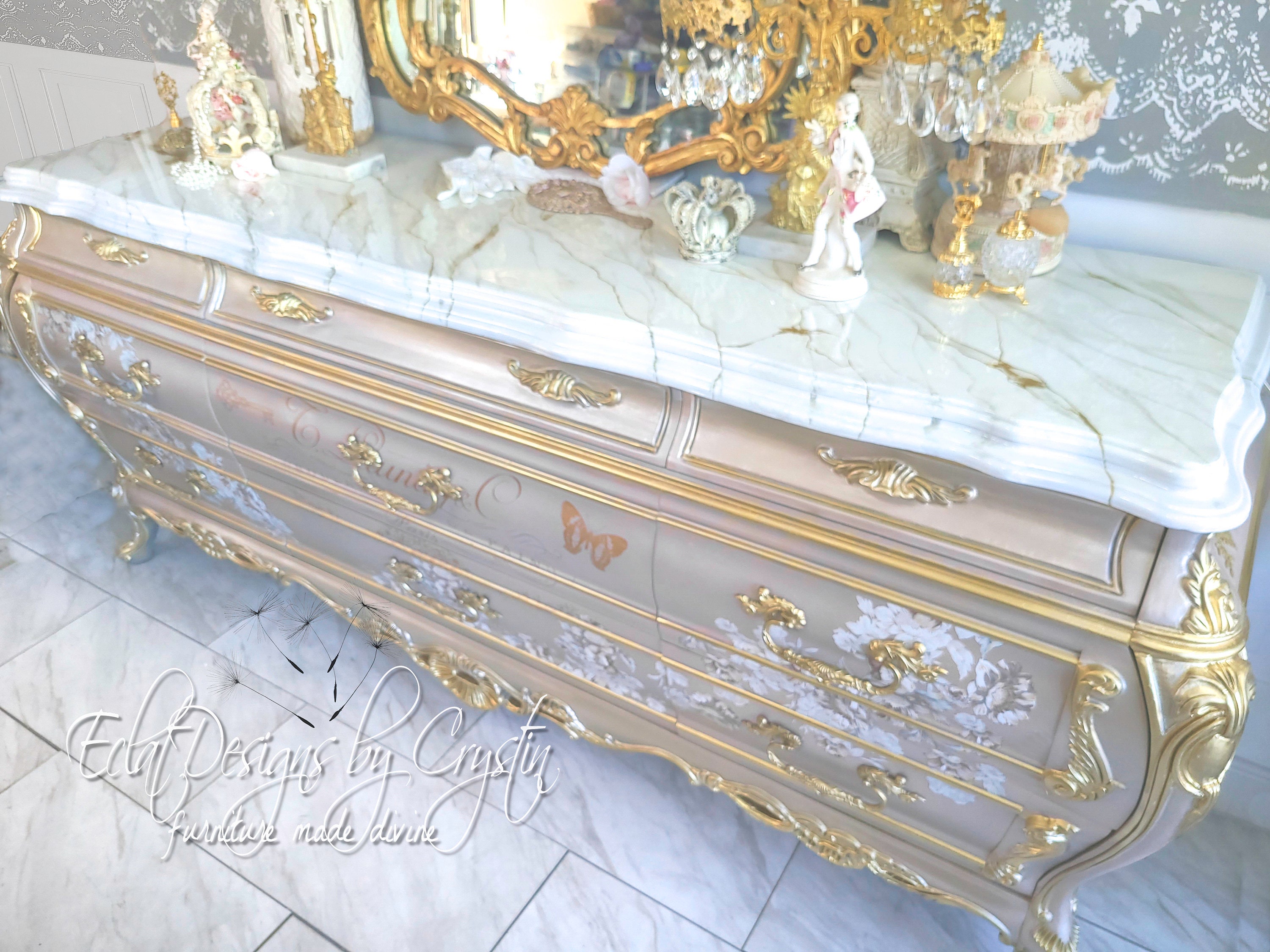 Custom Painted Dresser/ Pearly Pink, Bombay, Rococo Dresser/ Baroque/Luxury/ Fantasy/ French/ Parisian/ Refinished/ Glamorous/ Royal