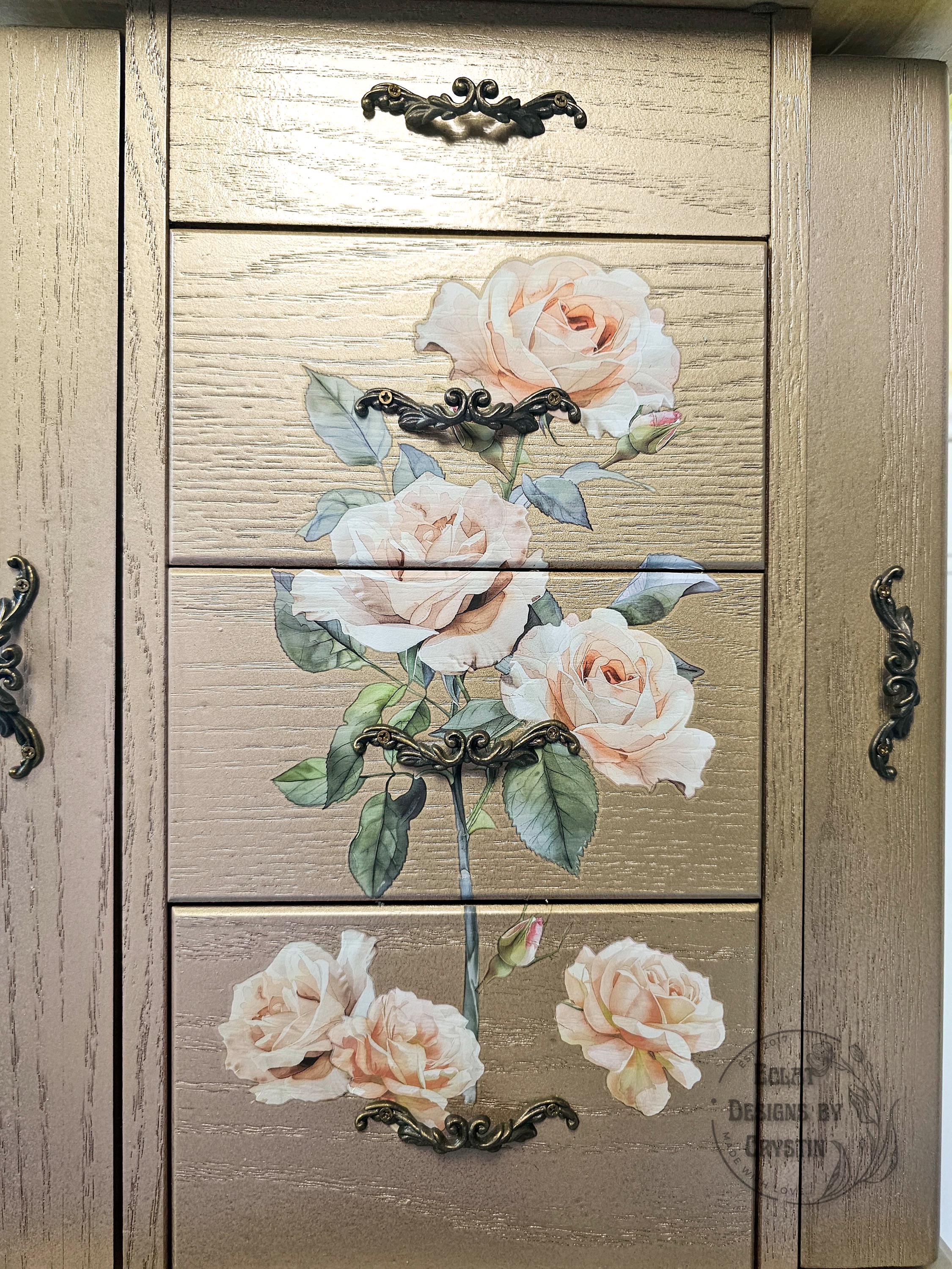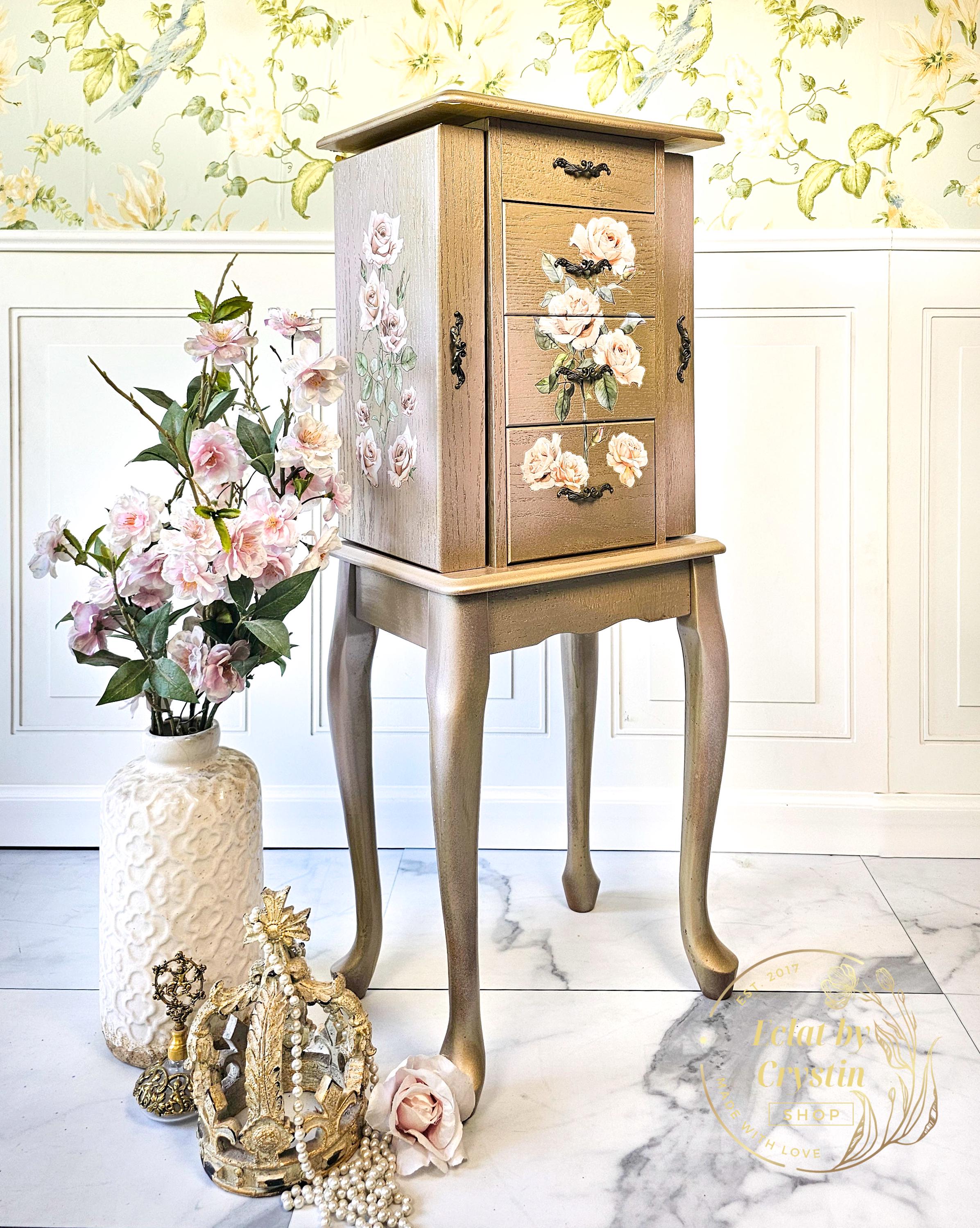 Handmade Champagne Rose Painted Jewelry Armoire with Small Mirror