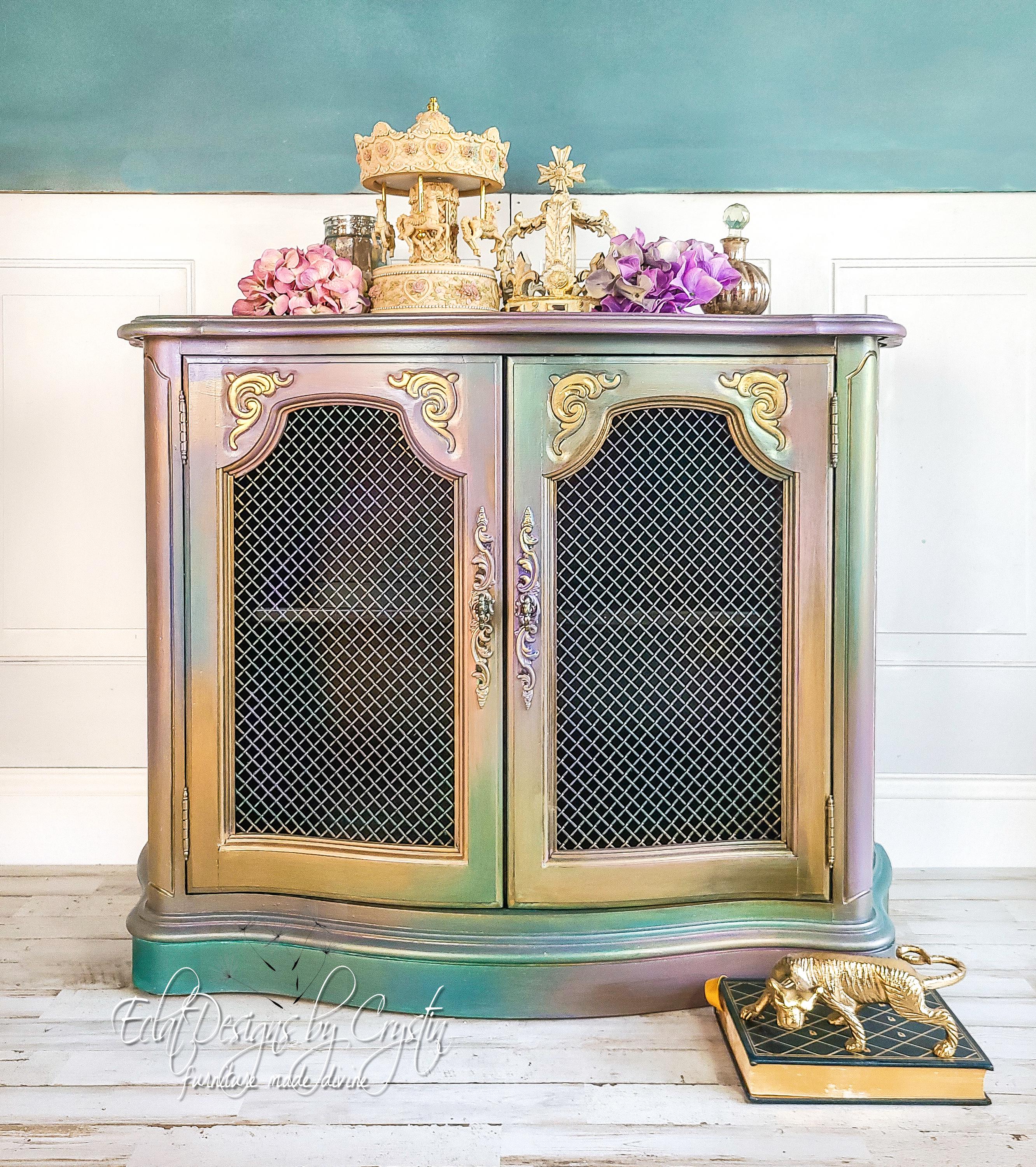 Artistic Bohemian Media Cabinet TV Stand in Metallic Pastel Colors