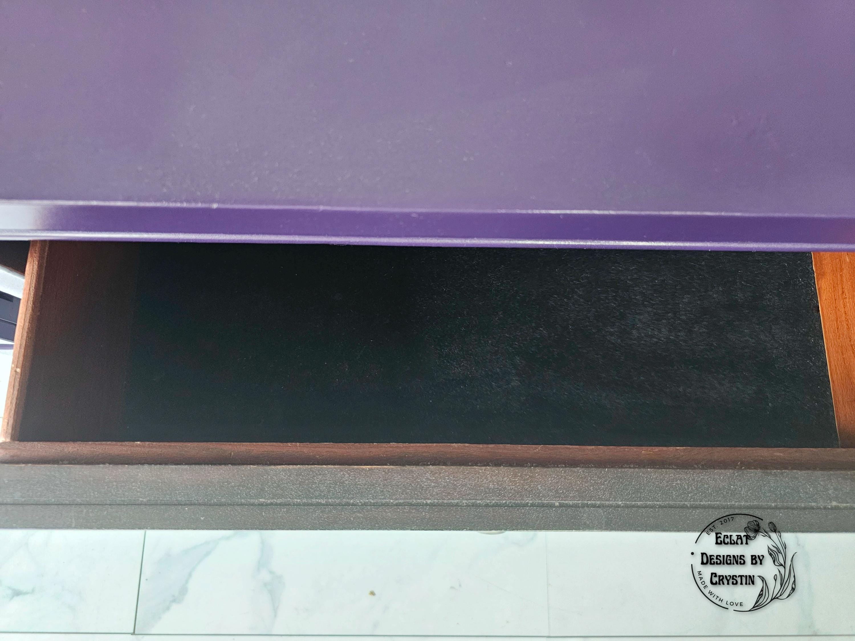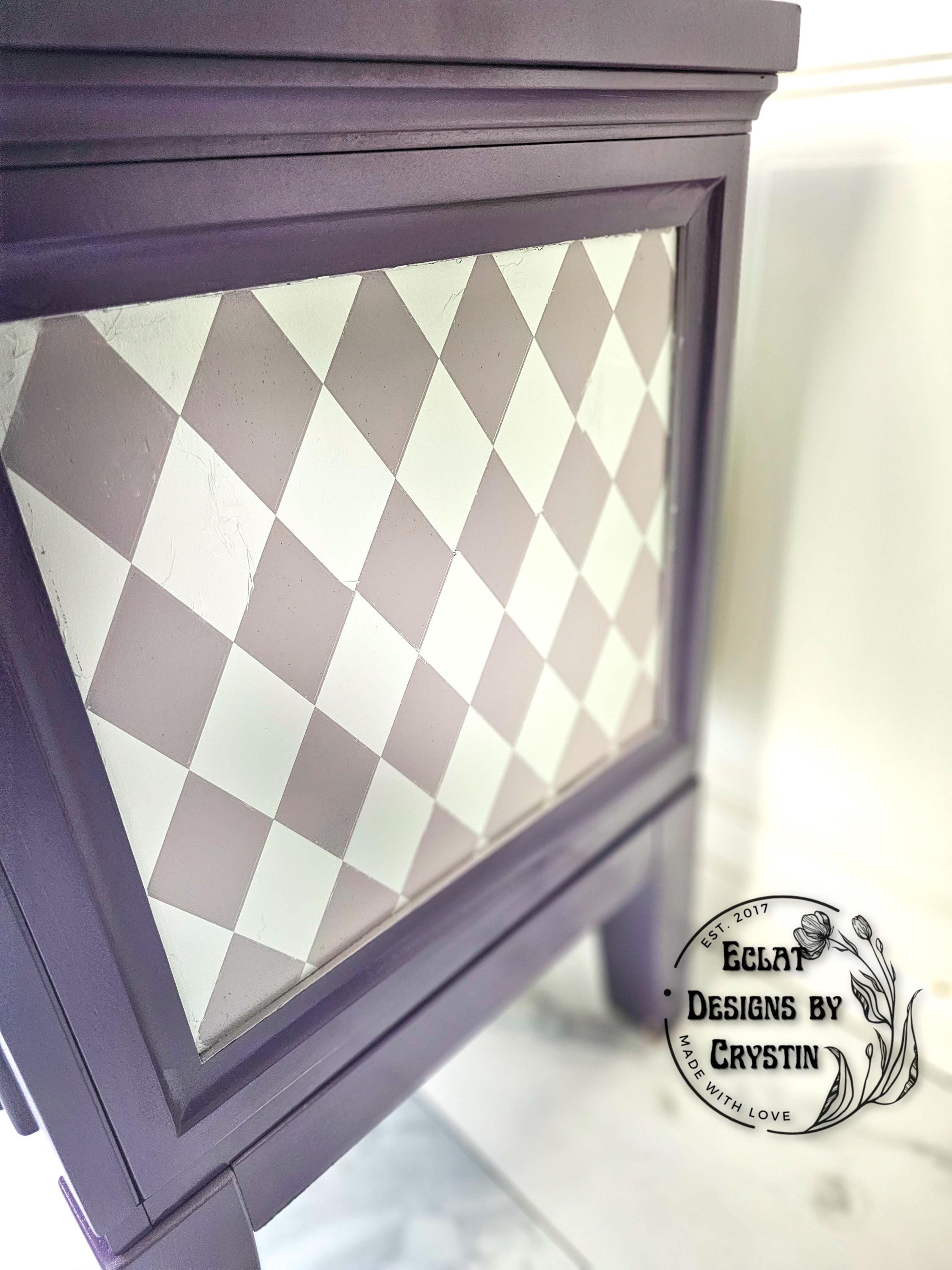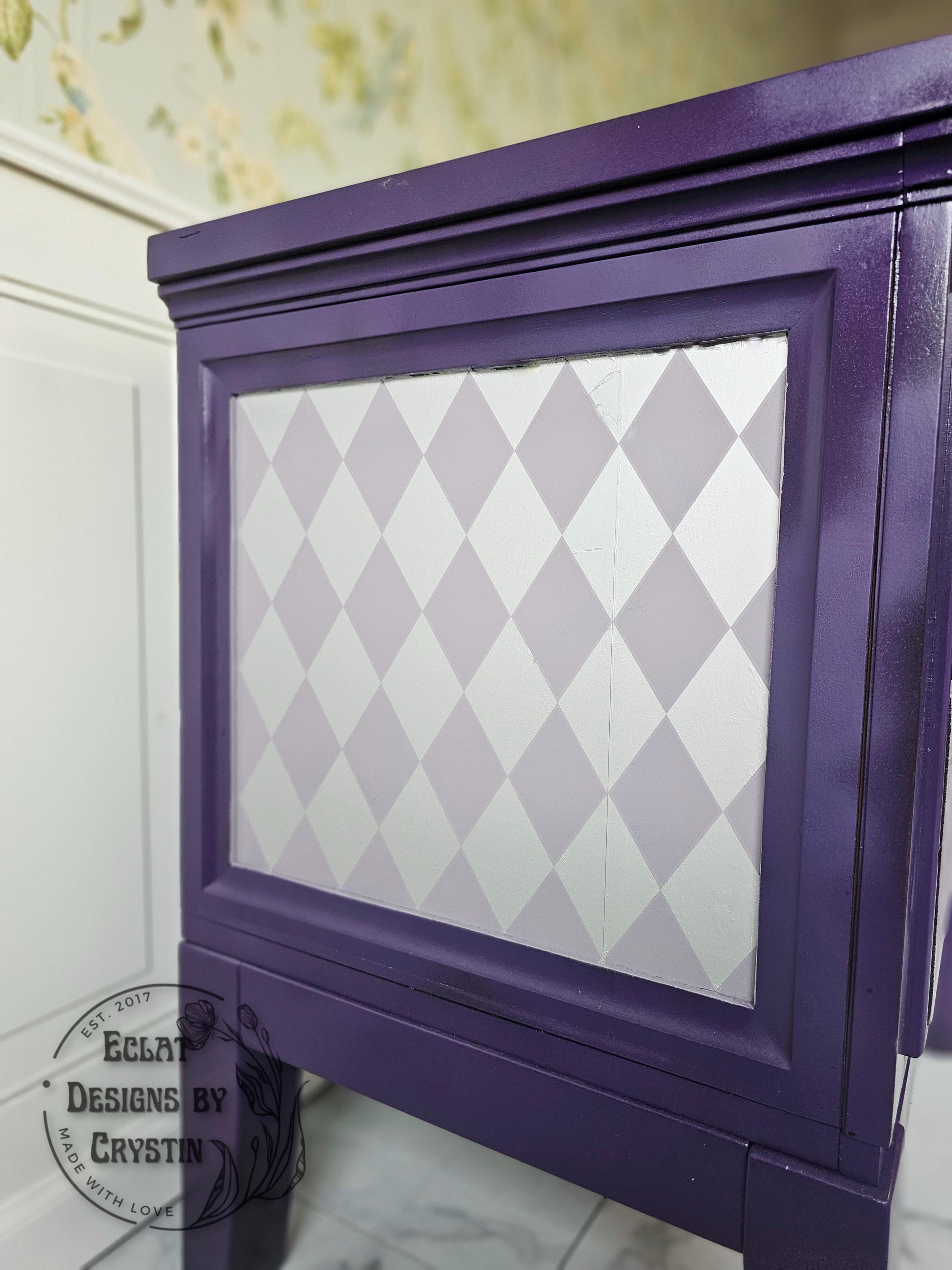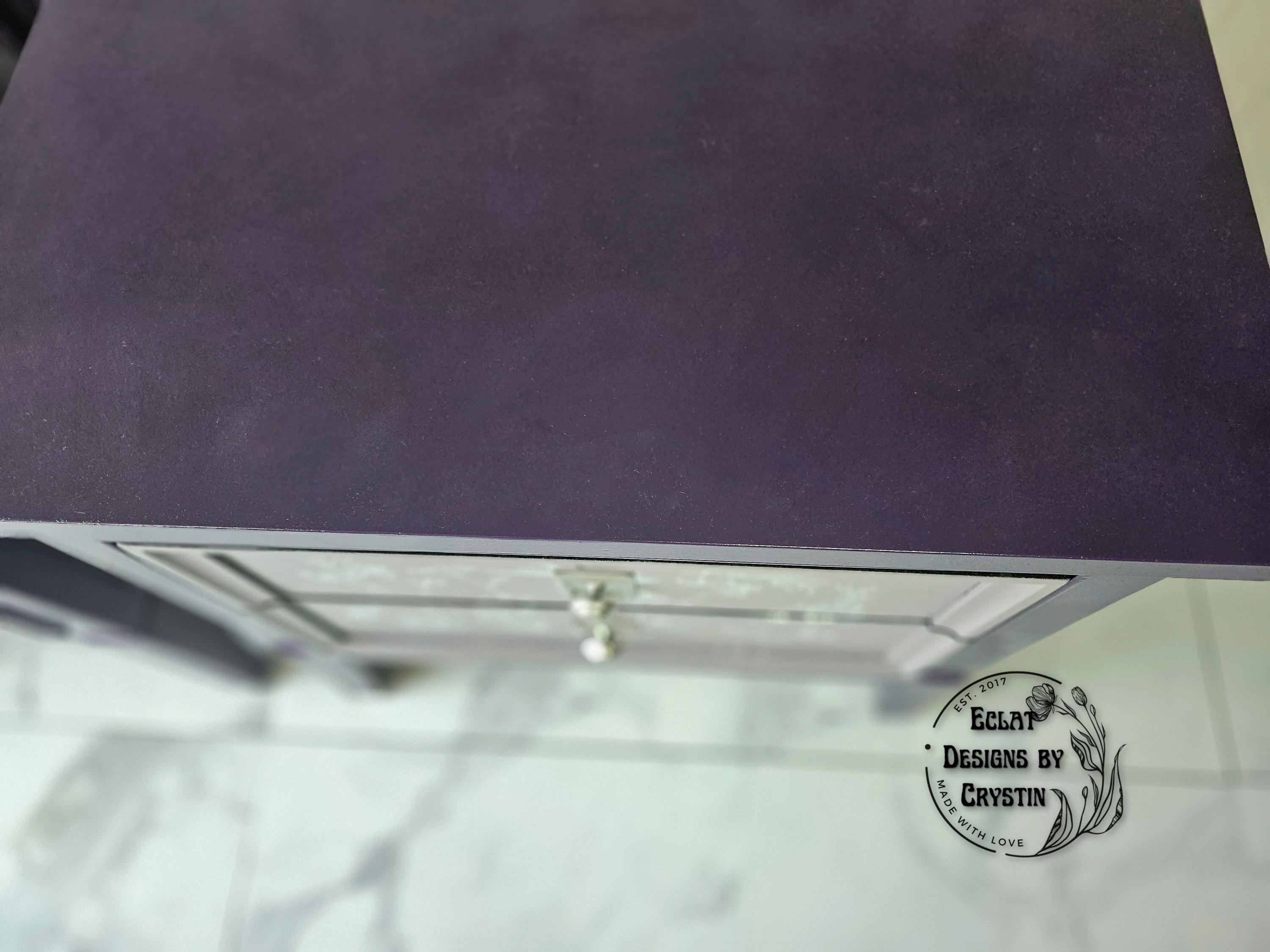 Silver Birds and Blossoms Handmade Purple Nightstands with Silver Harlequin Sides and 2 Drawers