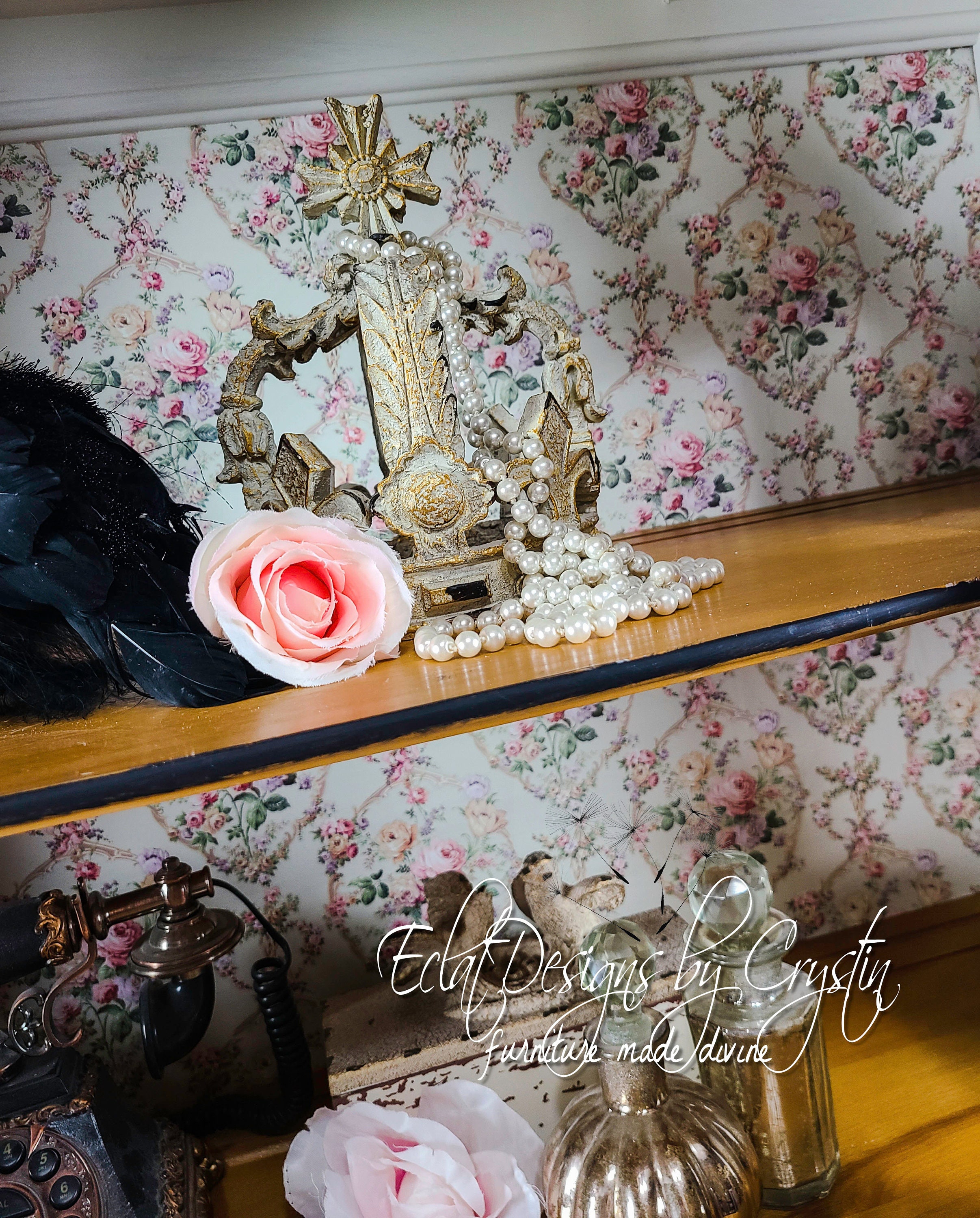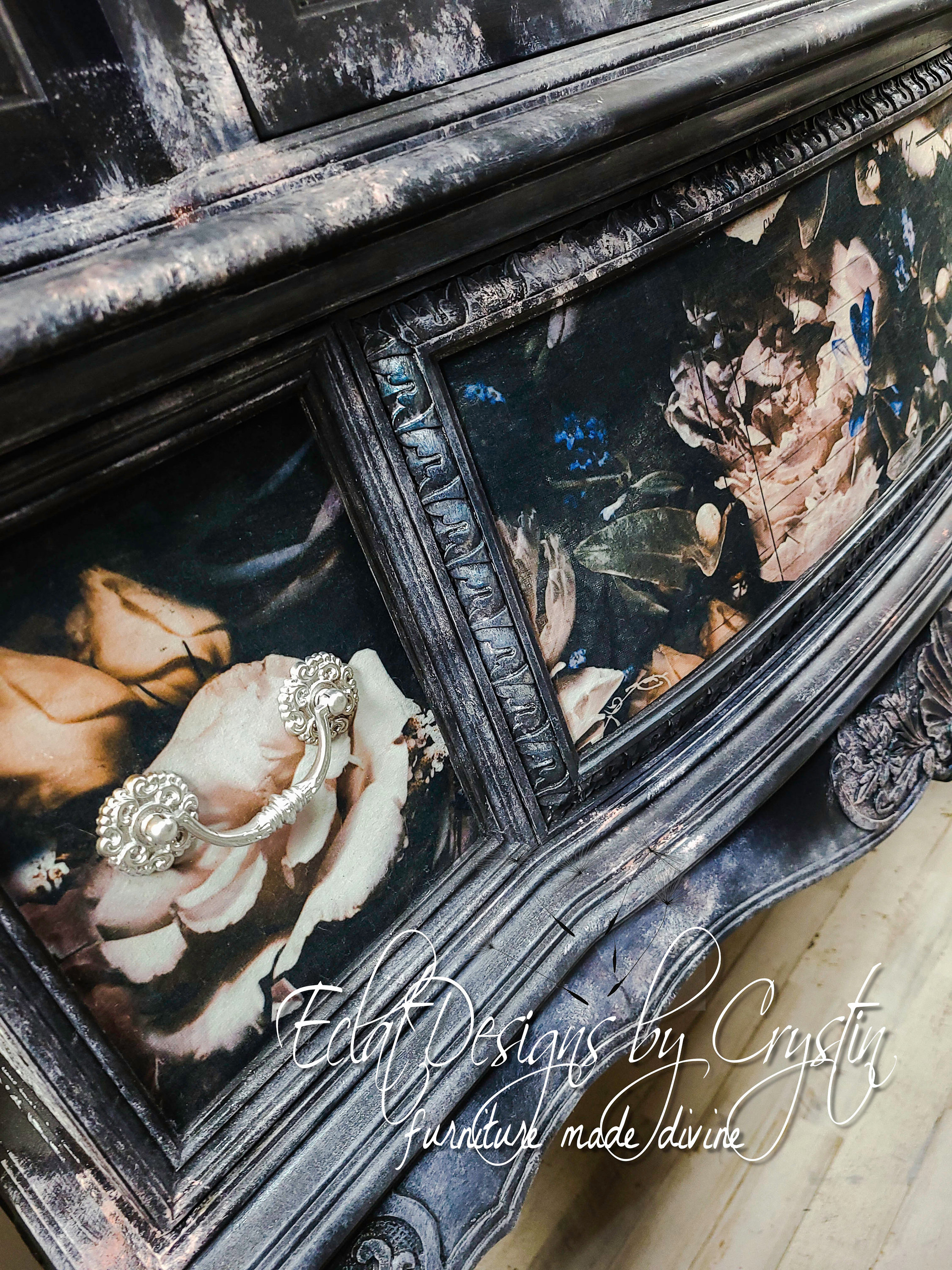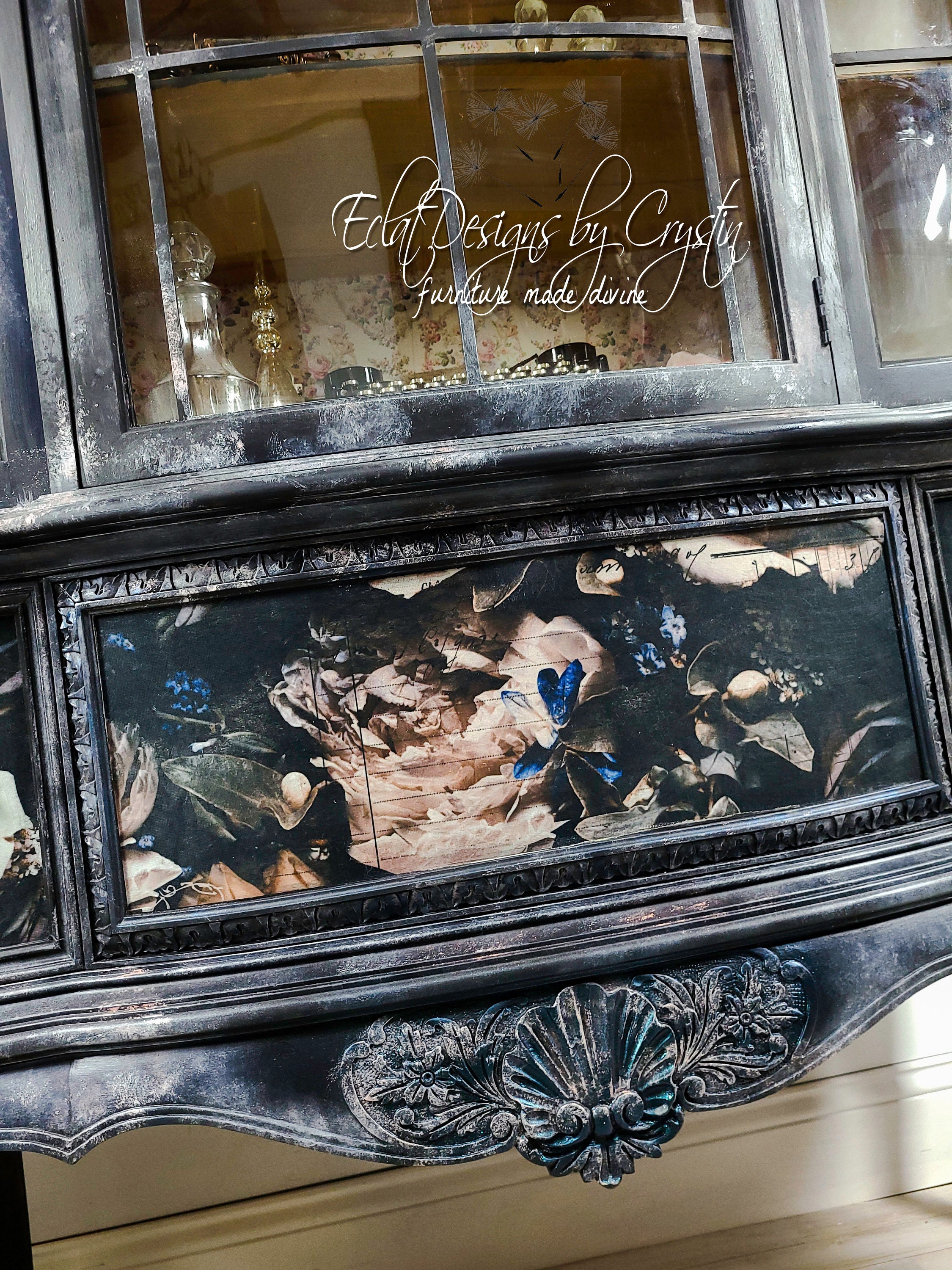 Custom Black Gothic Victorian China Cabinet/ Hutch with Pink Roses